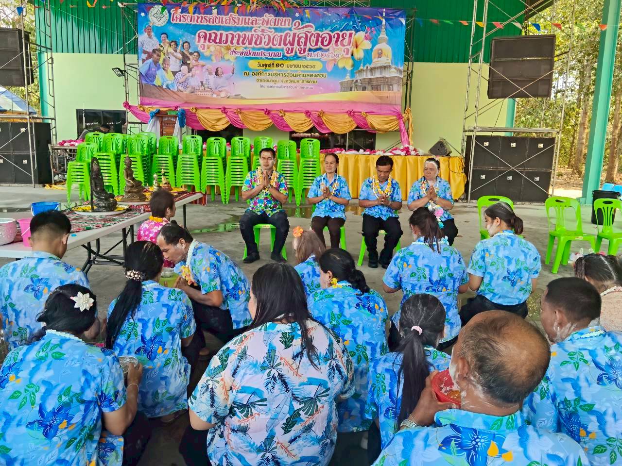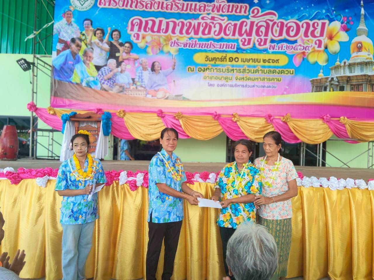 วันที่ 10 เมษายน พ.ศ. 2569 องค์การบริหารส่วนตำบลดงดวน นำโดยนายมงคล ปัจจัยโคนัง นายกองค์การบริหารส่วนตำบลดงดวนพร้อมด้วยคณะผู้บริหาร/หัวหน้าส่วนราชการ/พนักงานจ้าง/ครูผู้ดูแลเด็ก/สมาชิกสภาฯ เจ้าหน้าที่ รพ.สต.บ้านแดงโพง และ รพ.สต.บ้านนาฝาย ได้จัดโครงการส่งเสริมและพัฒนาคุณภาพชีวิตผู้สูงอายุ ประจำปีงบประมาณ พ.ศ. 2569 สรงน้ำผู้สูงอายุขอให้ทุกท่านมีแต่ความสุขความเจริญ เย็นทั่วหล้า มหาสงกรานต์ ณ องค์การบริหารส่วนตำบลดงดวน อำเภอนาดูน จังหวัดมหาสารคาม