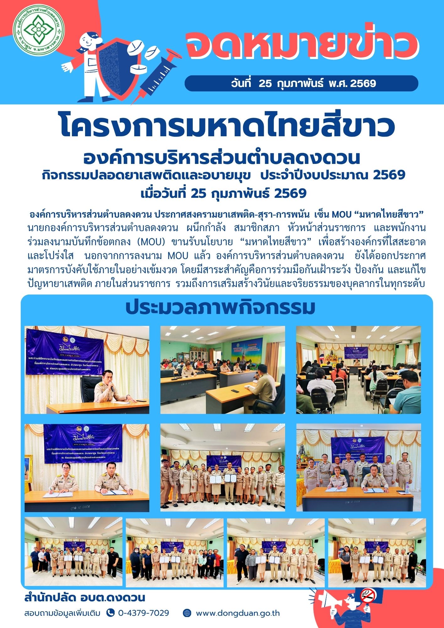 องค์การบริหารส่วนตำบลดงดวน ประกาศสงครามยาเสพติด-สุรา-การพนัน เซ็น MOU “มหาดไทยสีขาว”