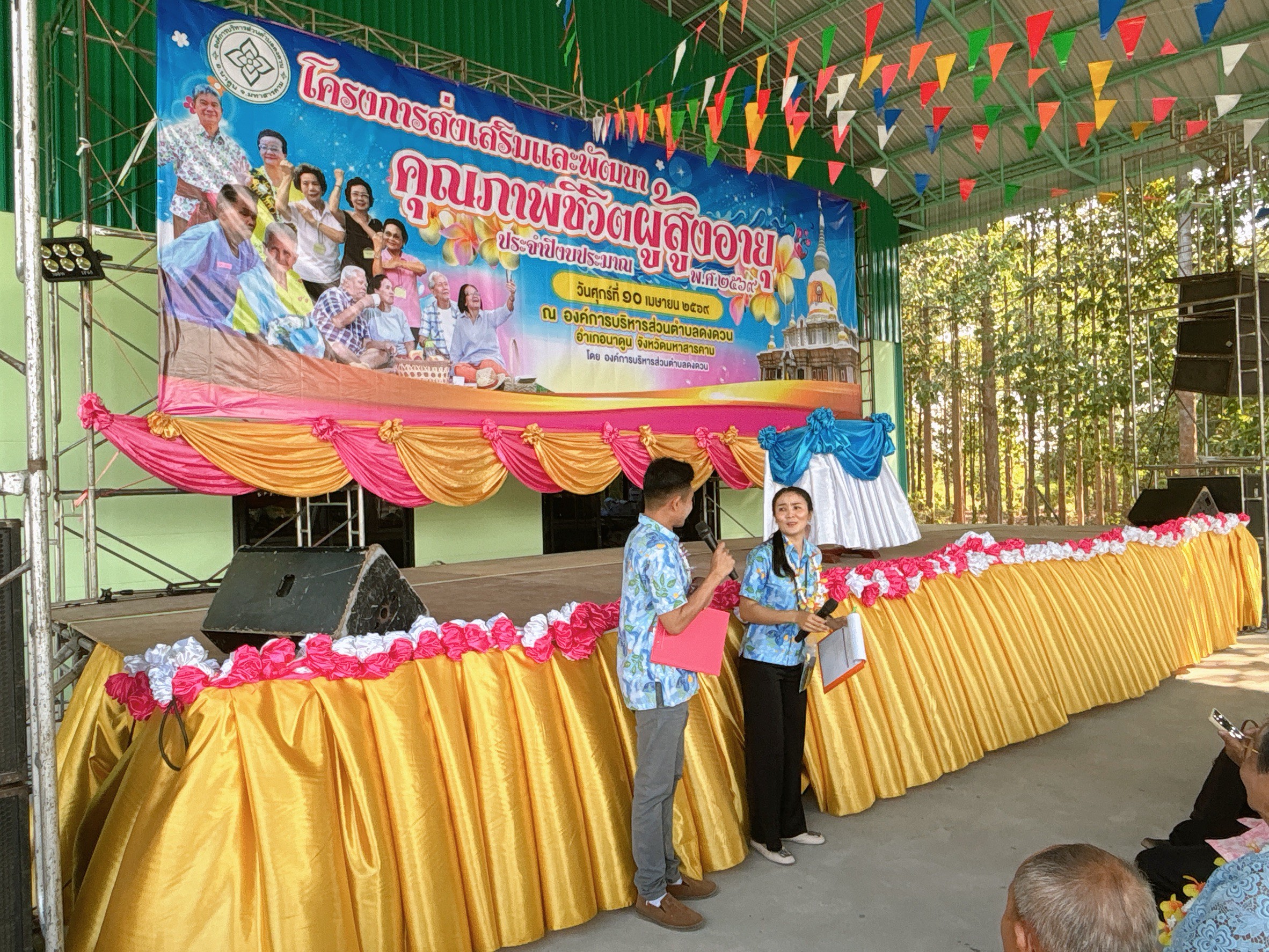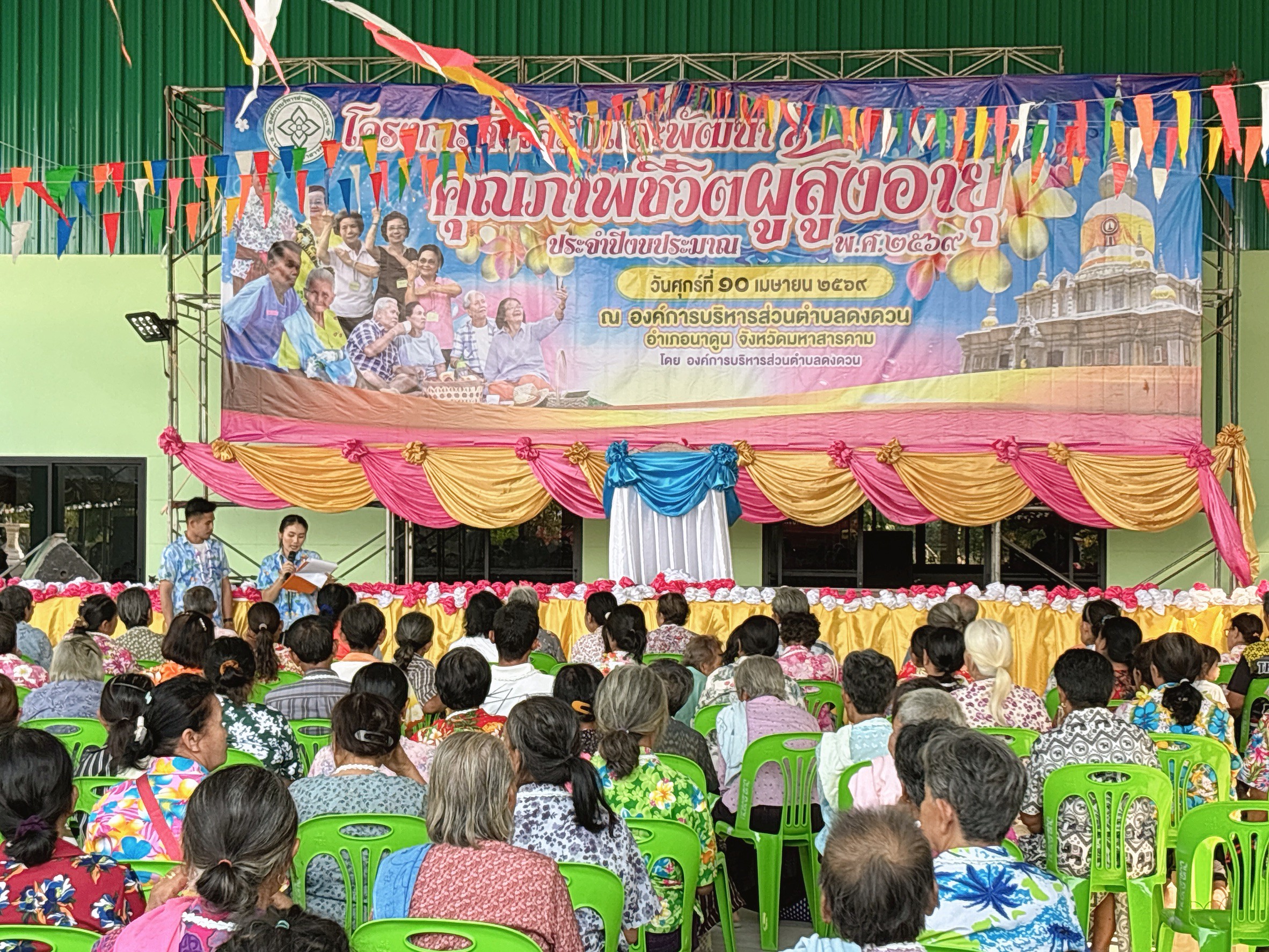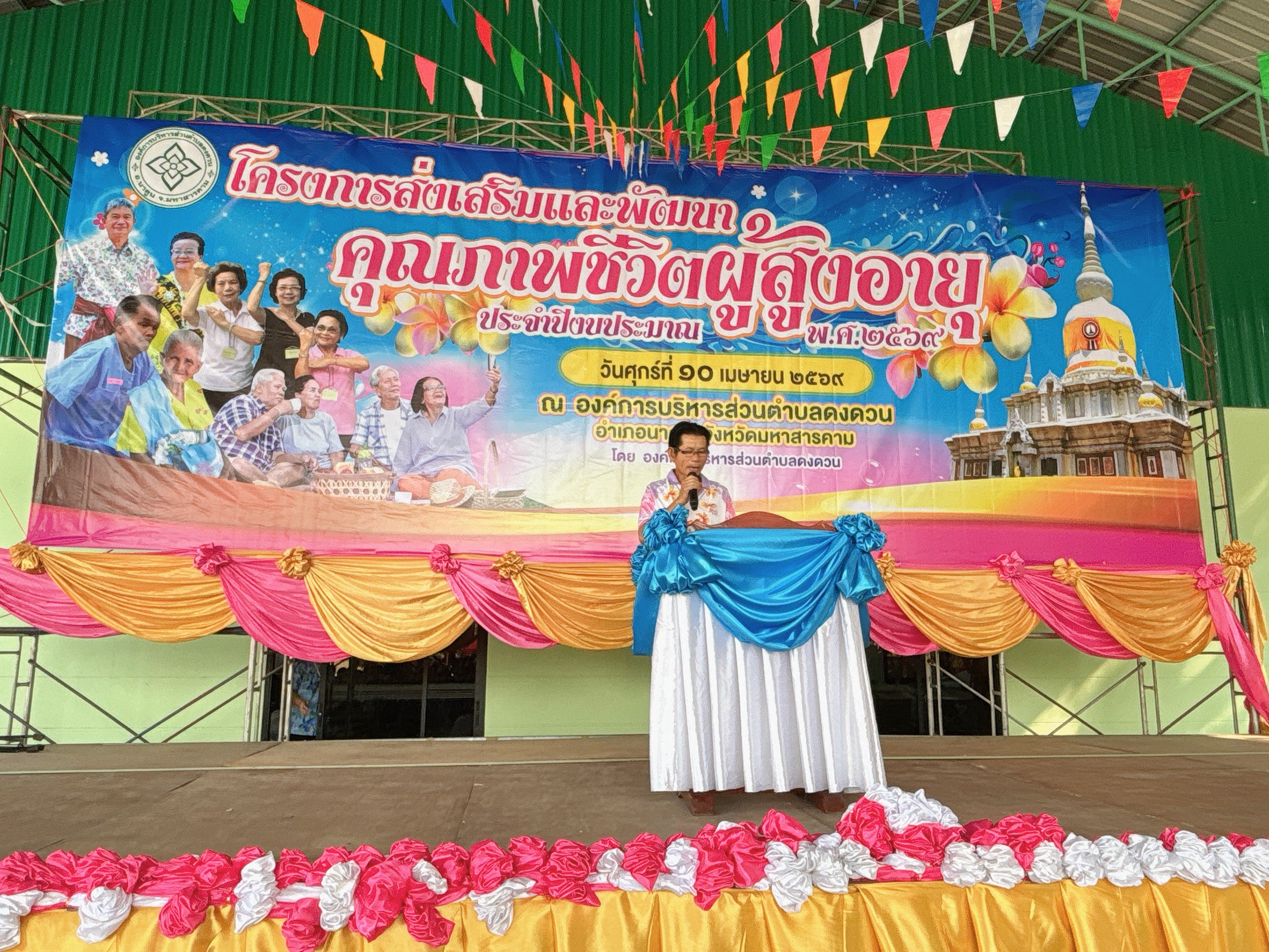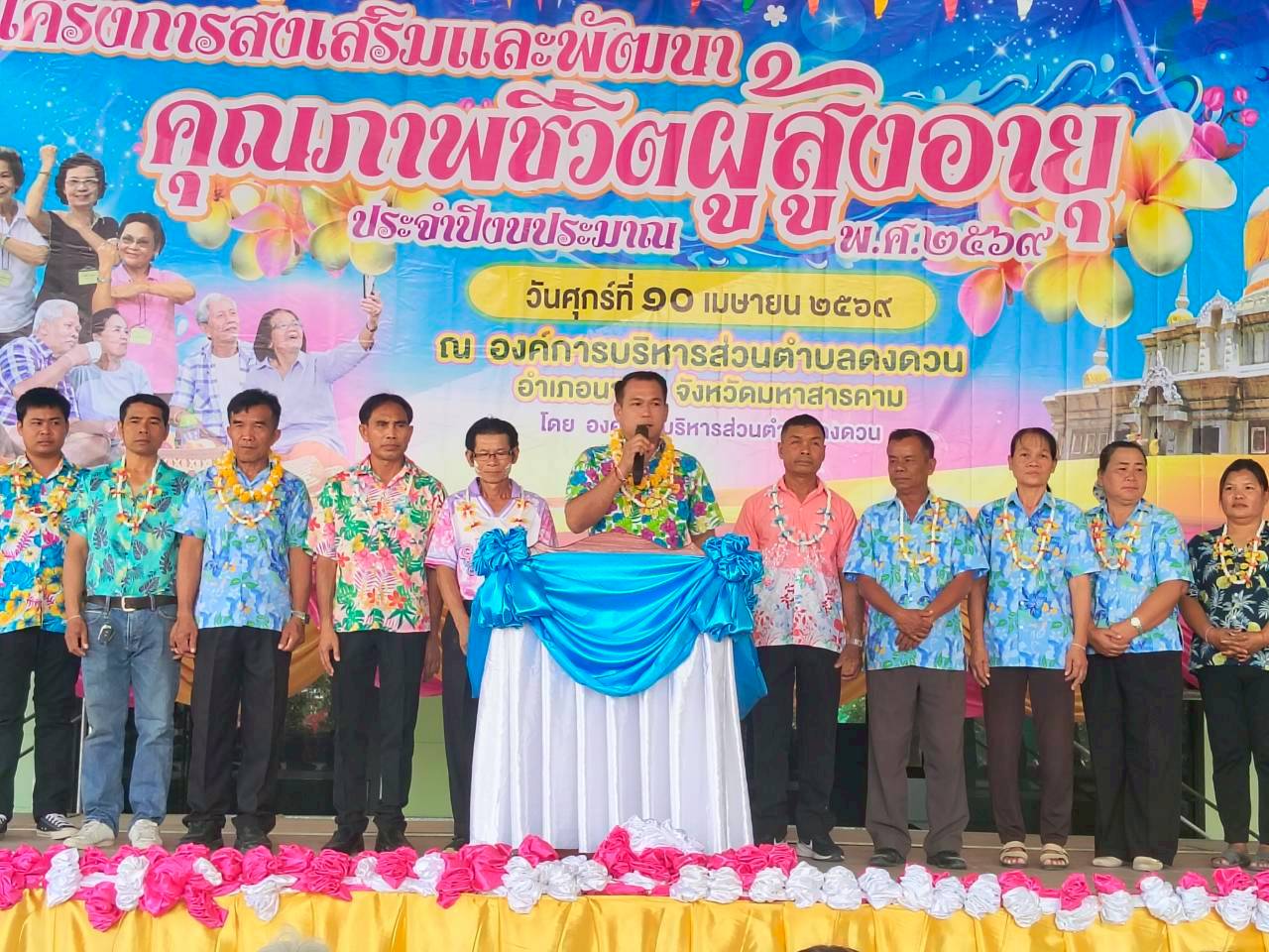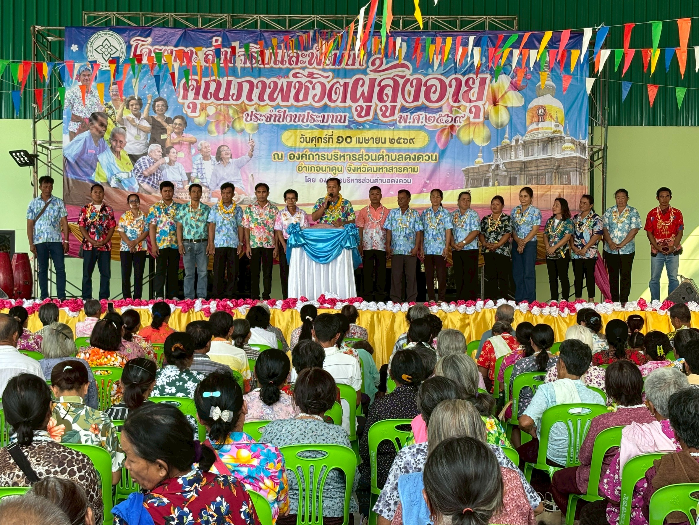 วันที่ 10 เมษายน พ.ศ. 2569 องค์การบริหารส่วนตำบลดงดวน นำโดยนายมงคล ปัจจัยโคนัง นายกองค์การบริหารส่วนตำบลดงดวนพร้อมด้วยคณะผู้บริหาร/หัวหน้าส่วนราชการ/พนักงานจ้าง/ครูผู้ดูแลเด็ก/สมาชิกสภาฯ เจ้าหน้าที่ รพ.สต.บ้านแดงโพง และ รพ.สต.บ้านนาฝาย ได้จัดโครงการส่งเสริมและพัฒนาคุณภาพชีวิตผู้สูงอายุ ประจำปีงบประมาณ พ.ศ. 2569 สรงน้ำผู้สูงอายุขอให้ทุกท่านมีแต่ความสุขความเจริญ เย็นทั่วหล้า มหาสงกรานต์ ณ องค์การบริหารส่วนตำบลดงดวน อำเภอนาดูน จังหวัดมหาสารคาม